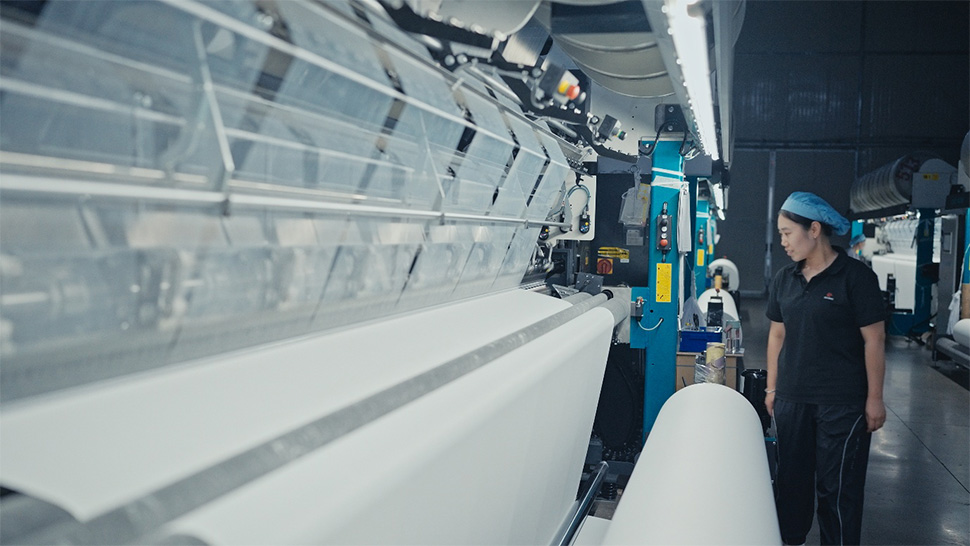 It is one thing to read that a manufacturer uses German-built Karl Mayer knitting systems and Menzel coating lines because they offer greater stability and fewer defects. It is another to stand in a place where the whole layout, from raw material onward, is designed to squeeze variation out of the process before the product ever reaches a printer. It is one thing to read that 3.2-metre and 5-metre coating lines rely on even tension and stable oven temperatures. It is another to watch a broad web of material pass through that environment and understand that these boring variables are where final print quality really begins, long before ink hits the surface.