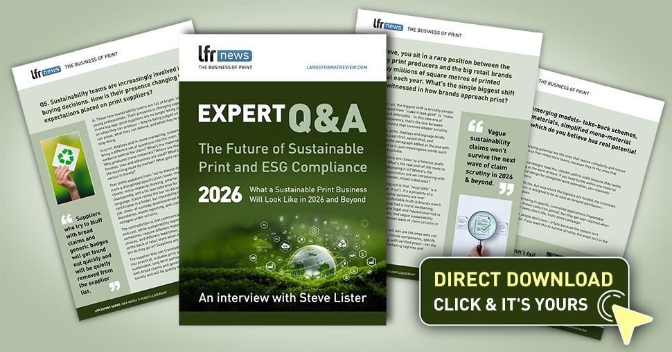 This interview with Steve Lister covers 30 questions and answers on the future of sustainable print and ESG compliance, and details what a sustainable print business might look like in 2026 and beyond, with a timely and unflinching look at what the industry must do to remain credible in the years ahead.