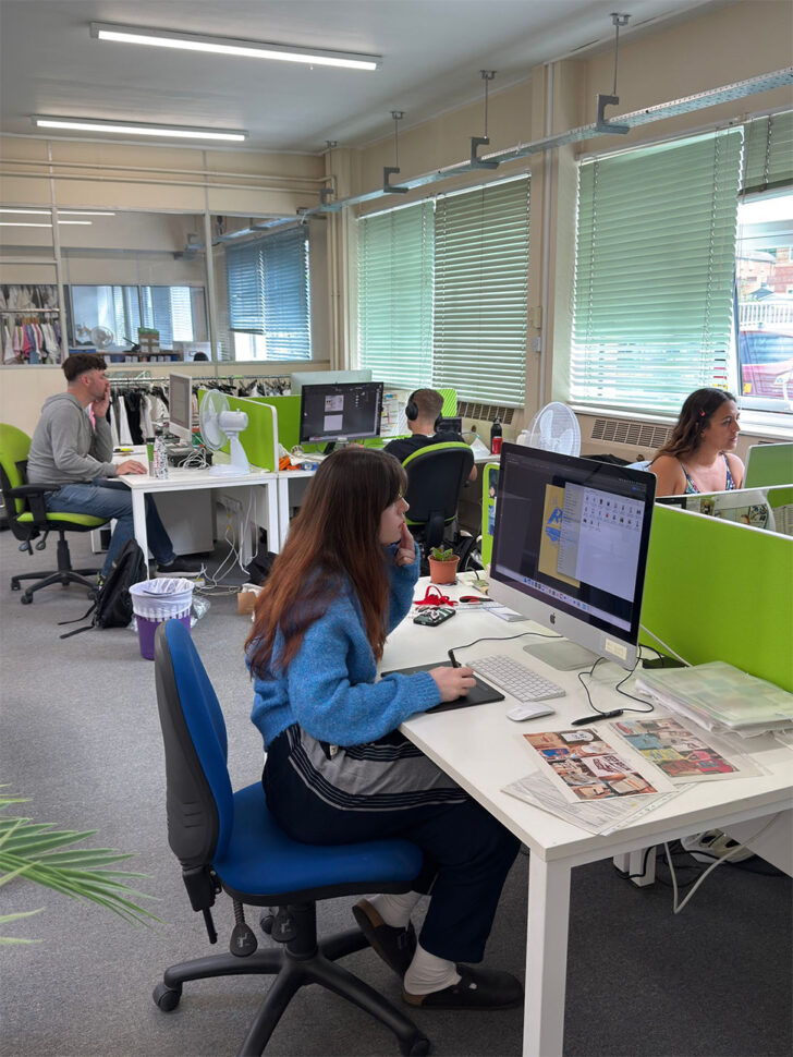 Leicester’s textile industry has faced its share of negative press, especially around factory conditions. In response to rising scrutiny, Rob made the bold move to consolidate all operations under one roof. This not only ensured compliance with rigorous audits but created a streamlined production model – bringing design, sales, processing, printing, and embroidery together in-house.