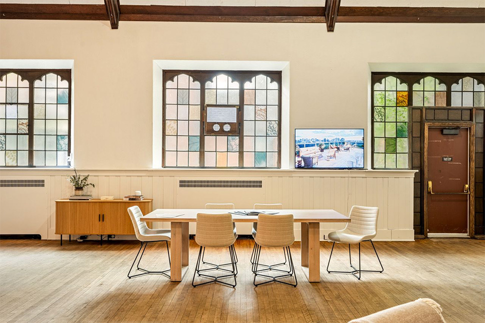 Brandsmith, a client of Sleek Signs, then contacted the large-format print specialist to partner on the project. The focus was to create signage that was purposeful yet reversible, respecting the building and its story. Within the brief were full-size wall murals and interior signage to anchor the space, as well as custom window graphics in the stained-glass spirit of the heritage site, allowing natural light to pass through.