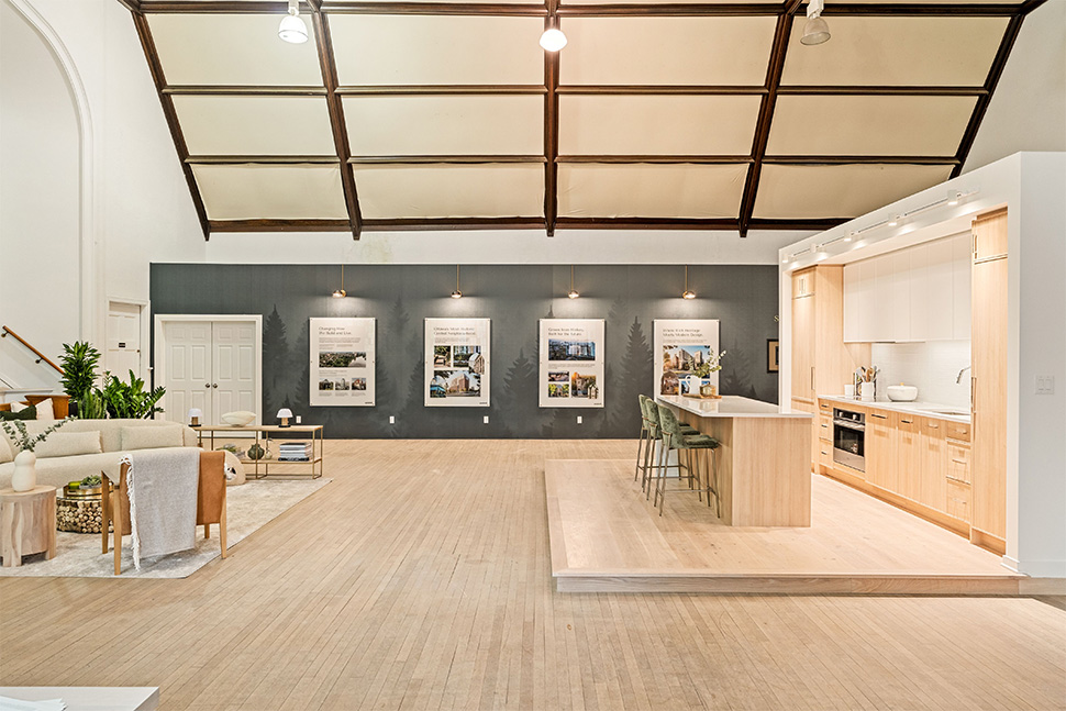 One of its most recent projects was at the sales centre for ‘The Evergreen on Blackburn’, a landmark development by Windmill Developments in Sandy Hill, Ottawa. Windmill approached Brandsmith, a Calgary-based creative agency that created the overall brand and sales centre experience, for help on the project, which included signage and various other interior pieces.