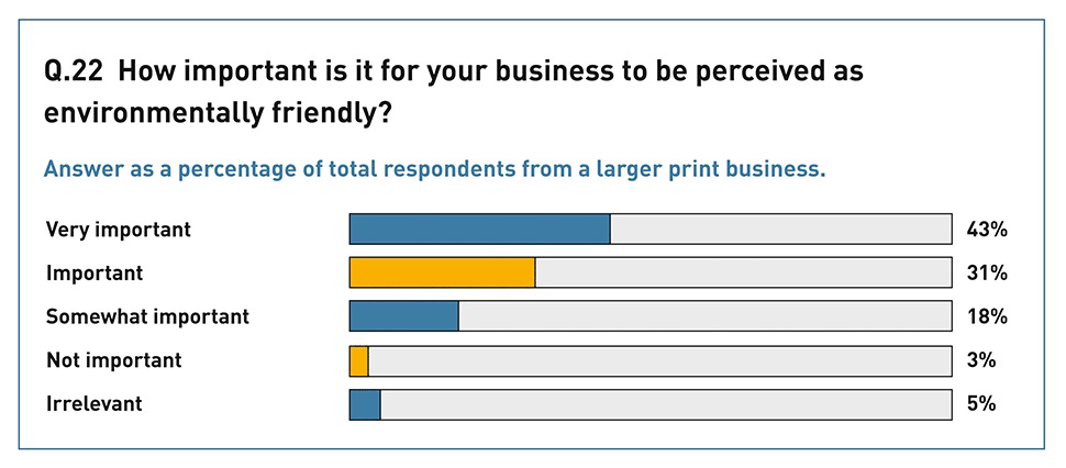 On the flip side, responses from smaller micro print businesses (fewer than 10 staff, and revenue below €1,000,000) showed 36% felt that environmental considerations were unimportant or even irrelevant to their business.