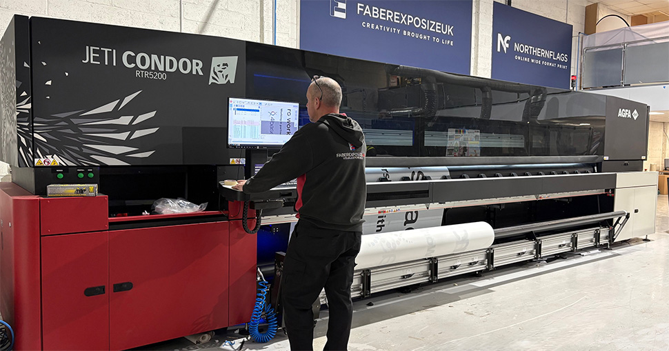 Agfa installs first UK Jeti Condor at FaberExposize, adding 5.2m multi-roll UV capacity and expanding high-volume print output.
